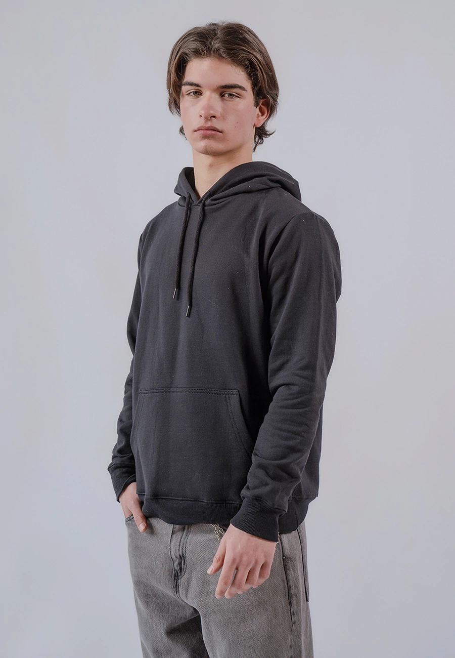 Buzo canguro frisado de calce regular, confeccionado en frisa de algodón suave. Tiene capucha con cordones ajustables, bolsillo delantero y terminaciones elastizadas en puños y cintura. Un básico infaltable: cómodo, versátil y fácil de combinar para cualquier ocasión.