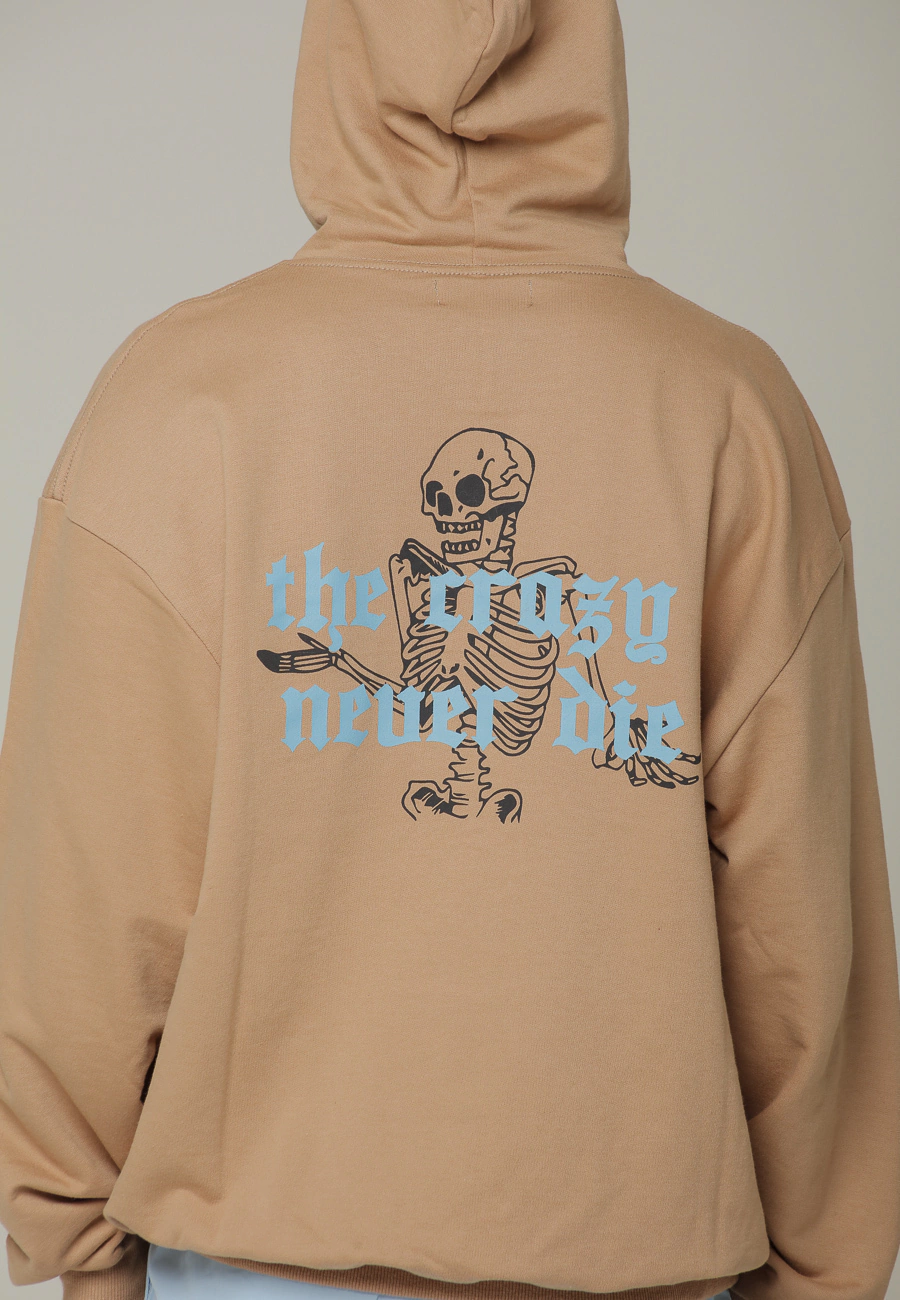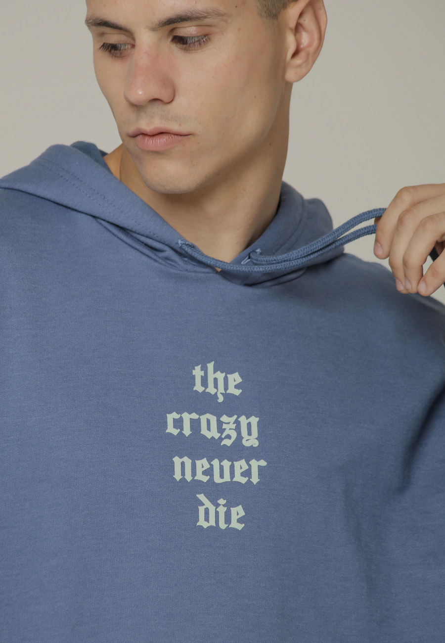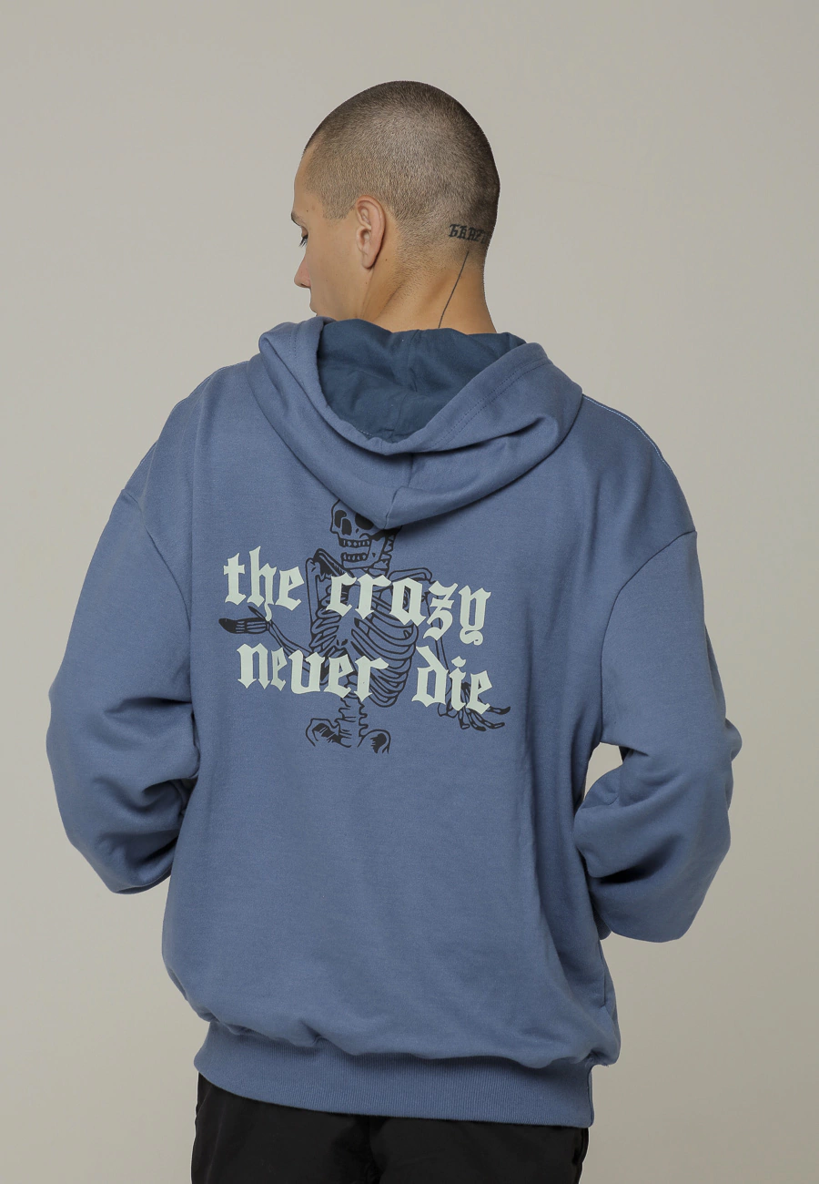 Buzo Crazy canguro rústico de calce oversize, confeccionado en algodón suave. Tiene capucha con cordones ajustables, bolsillo delantero y estampa en el frente y en la espalda, que le dan un toque distintivo y actual. Su textura liviana y fit relajado lo hacen ideal para un look urbano con estilo.