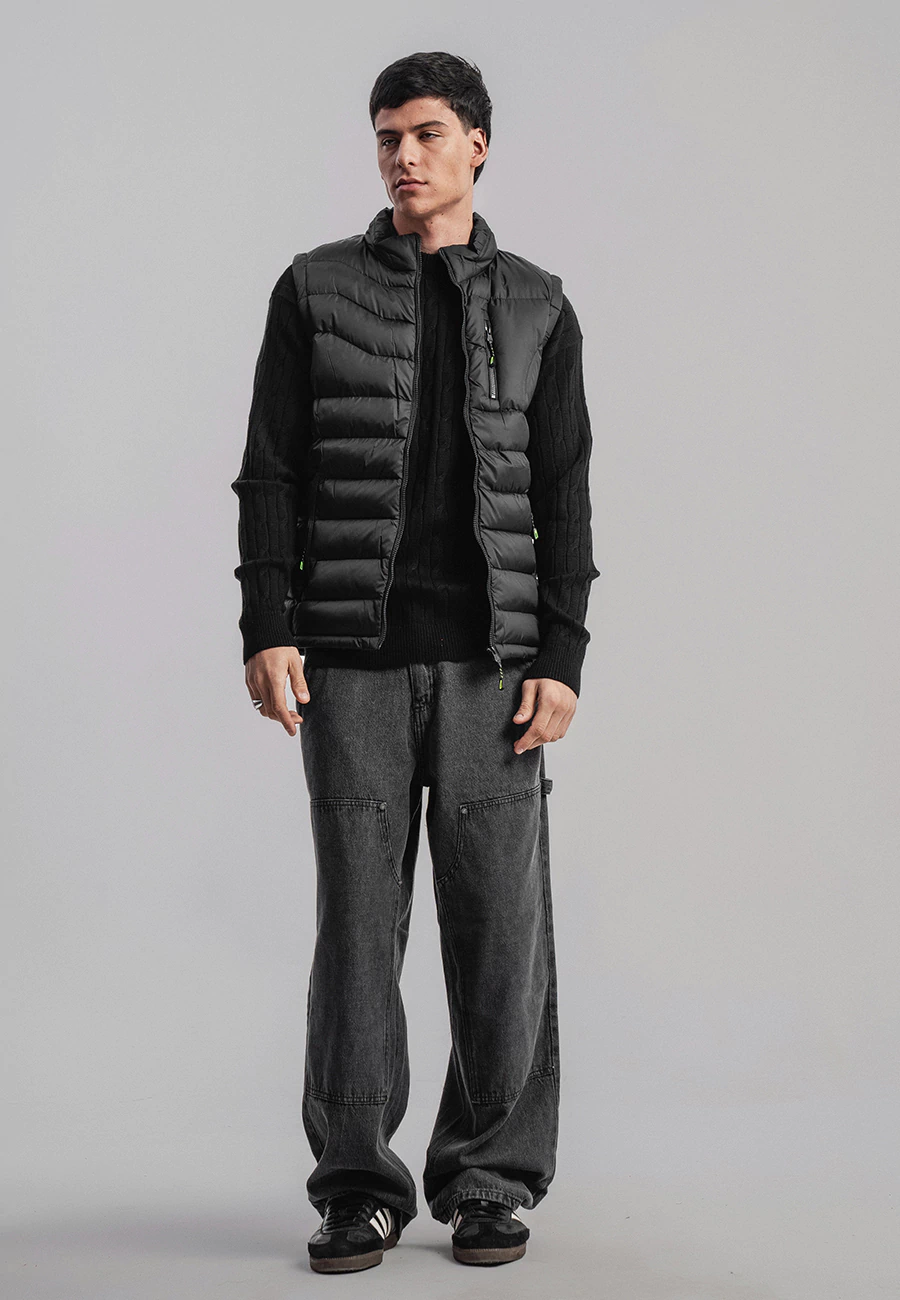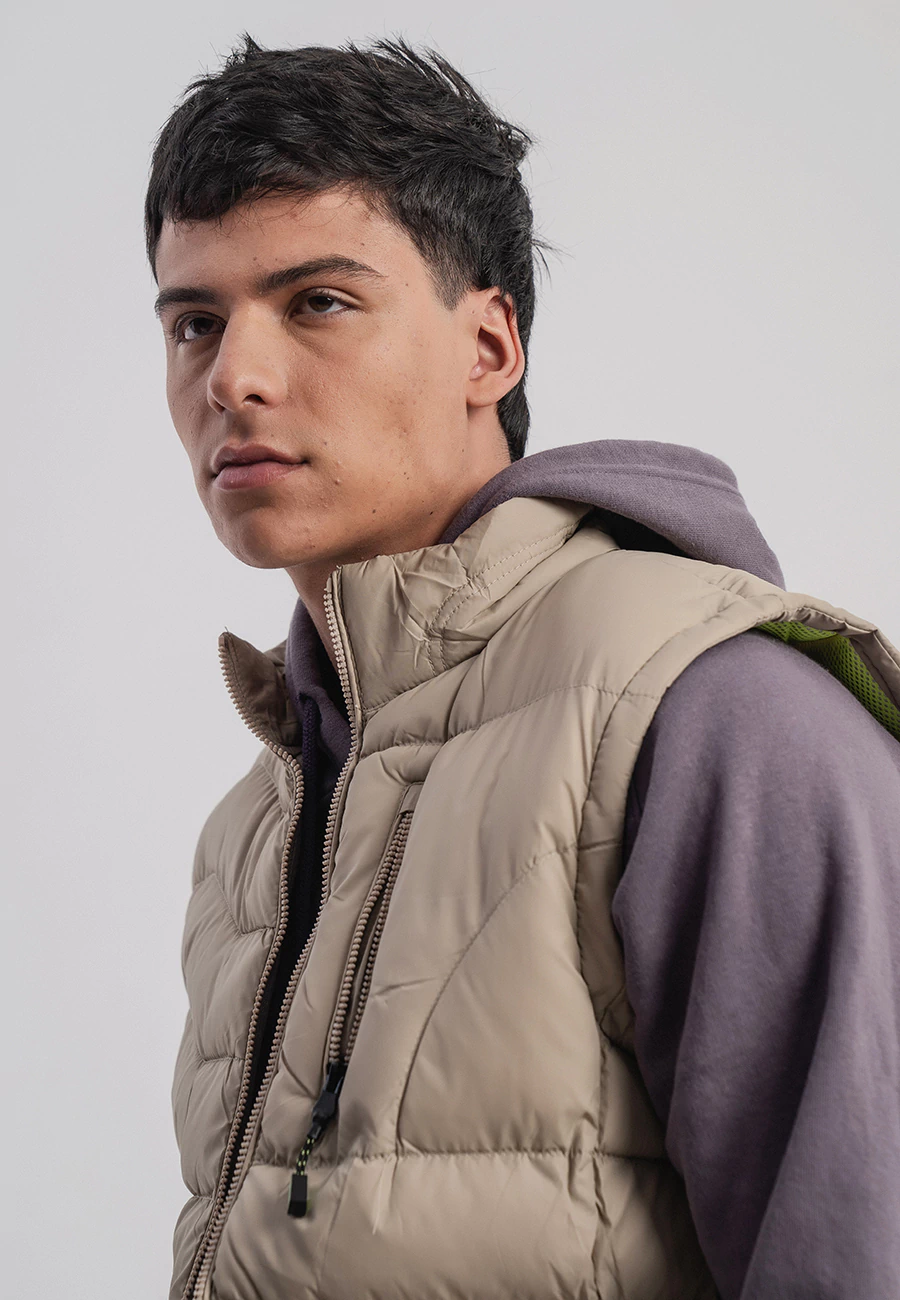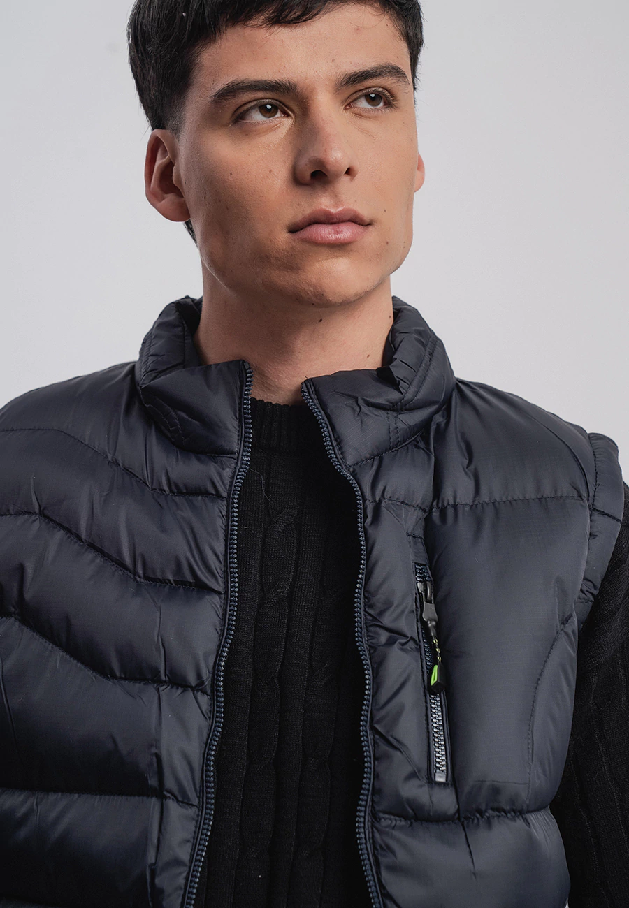 Chaleco Boom acolchado de calce regular, con cierre frontal y bolsillos laterales con detalles en color. Liviano pero abrigado, es ideal para usar sobre buzos o sweaters durante los días más frescos. Su diseño minimalista lo convierte en un básico versátil para cualquier look urbano.