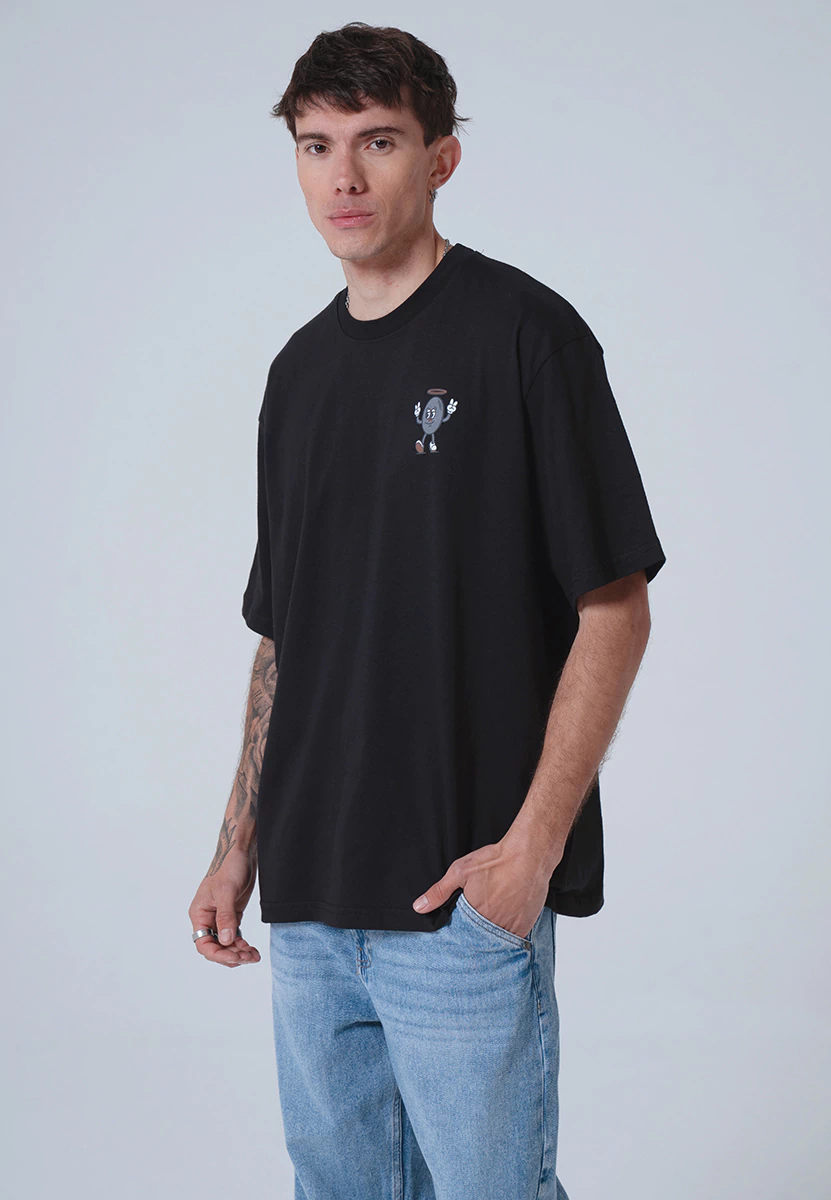 La remera Dj es una prenda oversize que combina comodidad y estilo moderno. Presenta un cuello redondo y manga corta con estampa en la parte de adelante y de atrás, con un corte amplio que brinda libertad de movimiento y un look relajado.