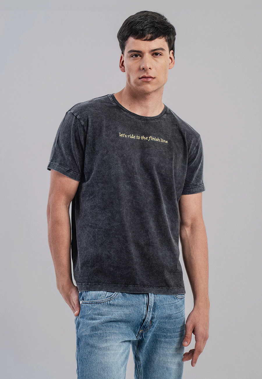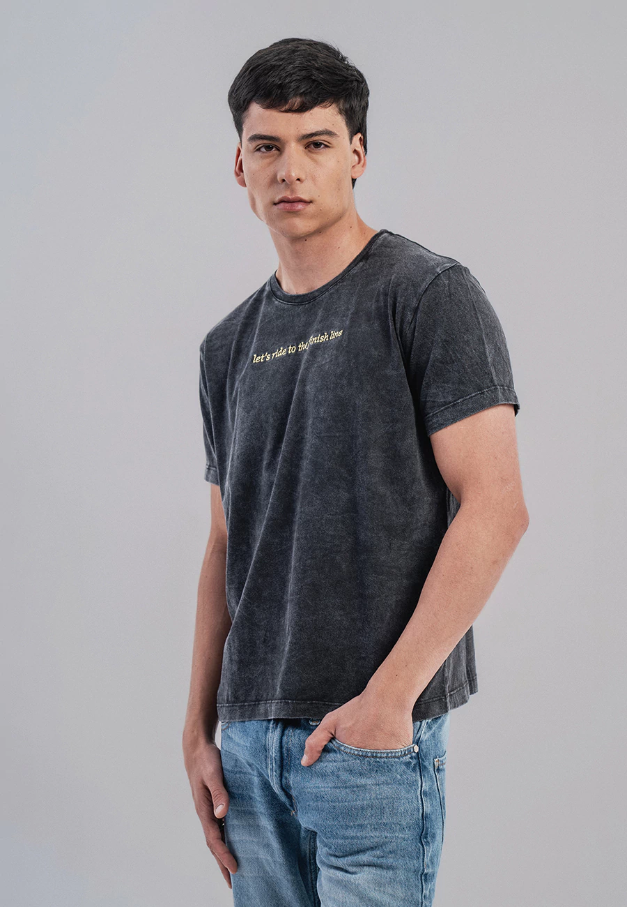 Remera finish de algodón lavada que le brinda máxima comodidad para el día a día. Presenta un diseño clásico regular con cuello redondo y manga corta, estampada en la parte de adelante. Ideal para cualquier estación.